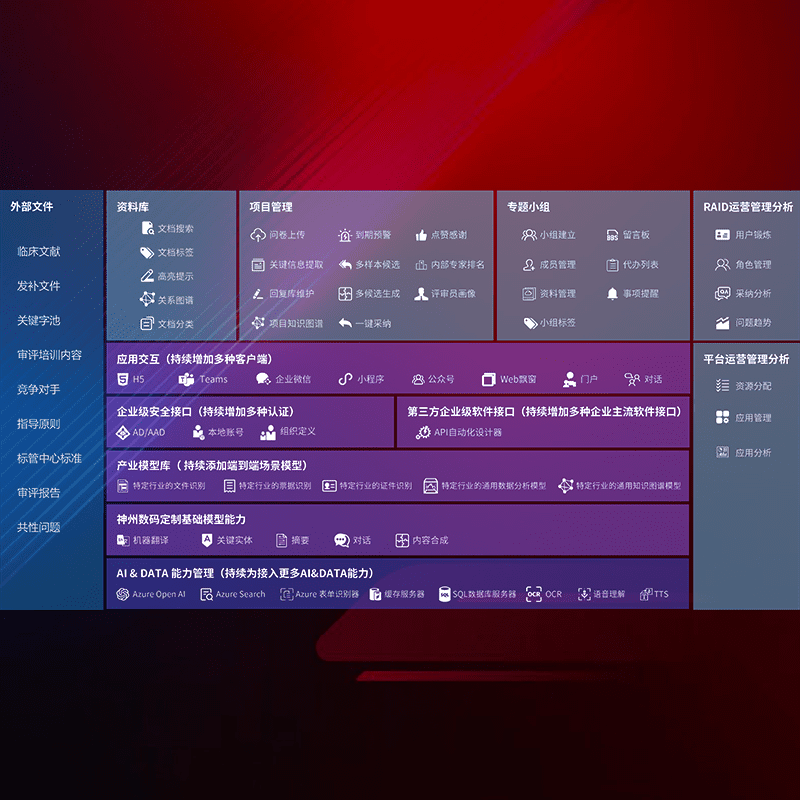 医疗器械产品上市前,,,,要熟悉严格与繁复评审标准,,整理分析监管机构指导文件中的海量信息。。。企业急需一个智能化解决方案,,,,提升知识管理效率,,,,提高评审通过率,,,,以提升其市场竞争力。。。